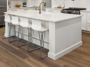 Uit het oogpunt voor stijl raden onze specialisten aan om eerst een keuken uit te kiezen. Heb je een keuze voor een keuken gemaakt, dan maakt dit de keuze voor de vloer een stuk eenvoudiger! Niet alleen voor het uitkiezen van de kleur maar ook voor de plaatsing van de vloer. In de praktijk zien we vaak dat dit andersom nog wel eens lastig kan zijn. Een keuken uitzoeken bij een vloer zorgt nou eenmaal voor een beperkte keuze. Om één compleet geheel te creëren, neem dan zeker een staal mee van de frontjes en het blad, dan kunnen we samen kijken welke vloer er mooi bij staat.