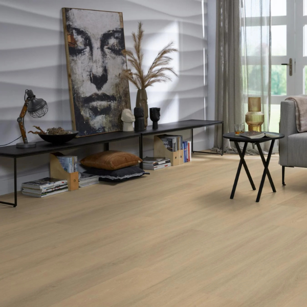 De groef langs vier zijden van de Sutton panelen zijn subtiel, maar zorgen er toch voor dat elke plank afzonderlijk te zien is, waardoor het gevoel van een houten vloer wordt versterkt. En met zijn natuurgetrouwe structuur (EIR) niet van echt hout te onderscheiden. Deze dryback pvc vloer kan gelegd worden in elke ruimte in huis, dus zelfs in de badkamer.